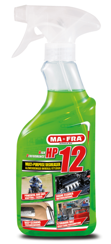 Dzięki aktywnej formule HP12 zapewnia silne działanie odtłuszczające nawet przy najbardziej uporczywym smarze. Może być stosowany na każdej powierzchni, w domu i na zewnątrz. Idealny do czyszczenia pojazdów takich jak samochody, motocykle, kampery i łodzie, narzędzi, akcesoriów do majsterkowania i ogrodnictwa, mebli, sprzętu AGD, a nawet silników.